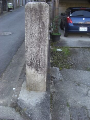左の長岡京花山局の一角に 土御門天皇陵の道標 が立つ