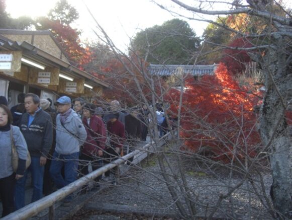 西山総本山光明寺へ進むのだが、なんと紅葉が有名なのか突然人が湧いてきた凄い人でお寺が大混雑