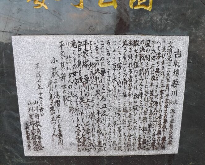山川指定文化財 要川と書かれた標柱 源平最後の激戦地との伝承