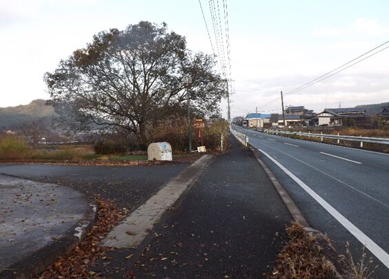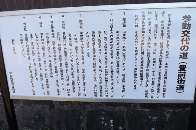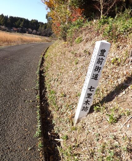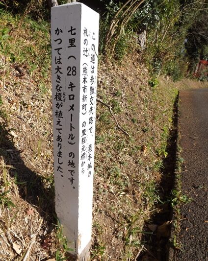 この道は参勤交代路で、熊本城の札ノ辻(熊本市新町)の里程元標から七里(28㎞)の地です。かつては大きな榎が植えられていた