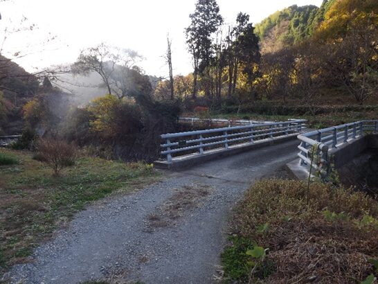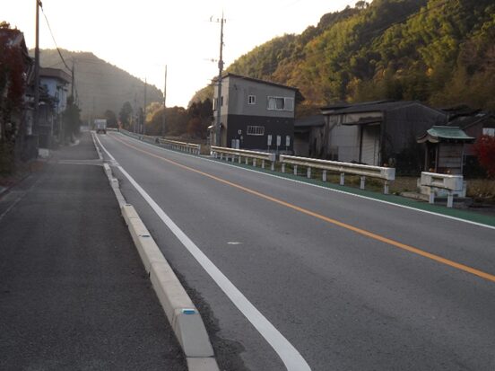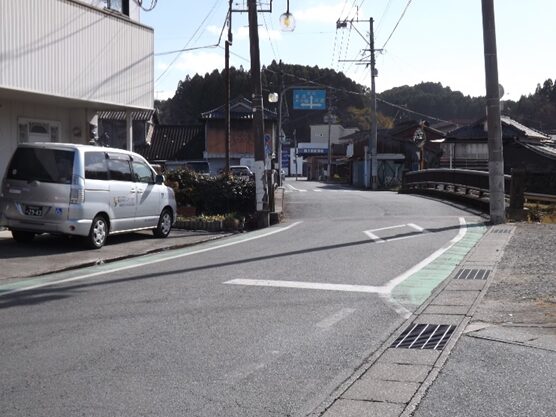 すぐ先前述の間違った道と、正しい旧道の道は右から和仁川に架かる平野橋を渡ってきて、この地点で合流。
