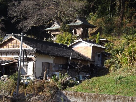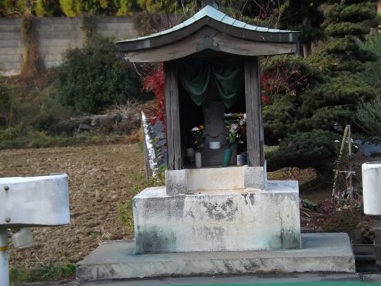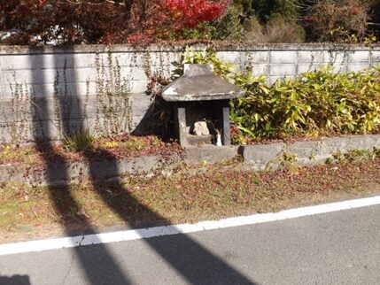 橋を渡り分岐を左に折れ、すぐの角を右に折れる。左手に お堂 が見えます
