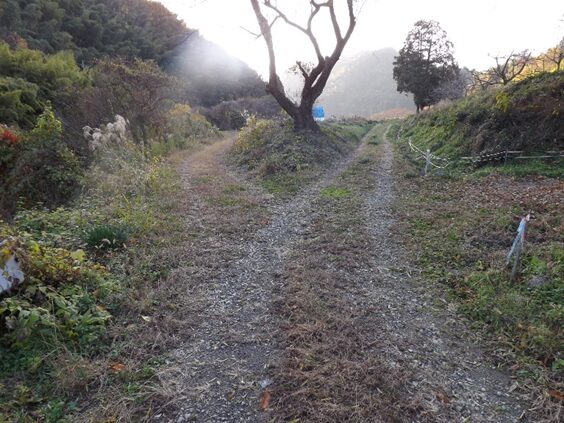 更にそのまま高速道を右に沿って進むと、八女96トンネルがあるとの事でそれを潜ると書いているので、坂を進んでいくが先は藪化して道が無くなる山に入る道がかろうじて見えるが、その道だと思うが少し不安なので諦める
