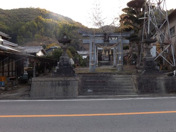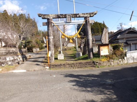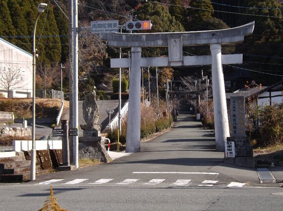 左手に 大津山阿蘇神社・目の神様生目八幡宮の大鳥居 がある