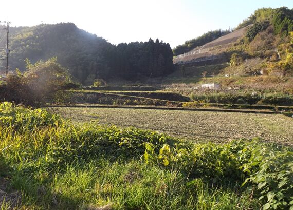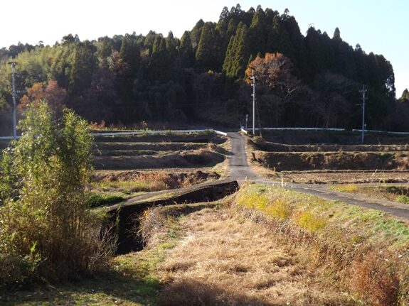 古戦場跡は、現在静かな気持ち良い風景で。ハゼや栗林が続く