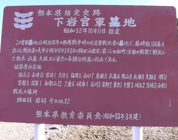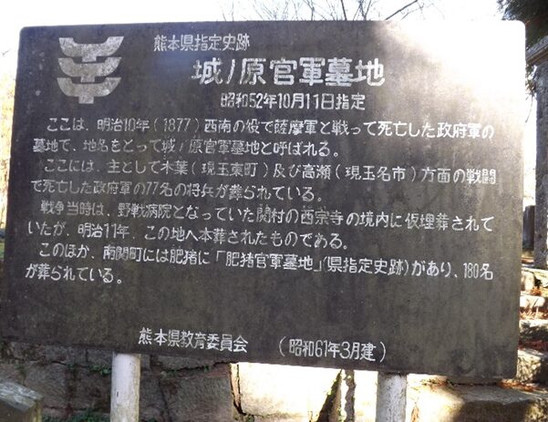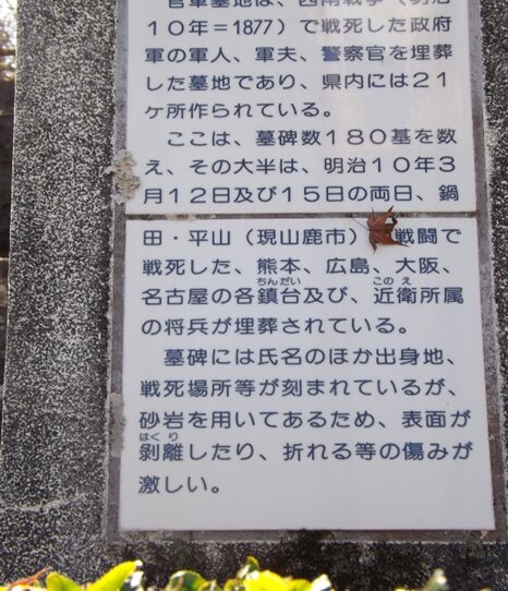 城ノ原官軍墓地の説明と石碑 政府軍77名が祀られている