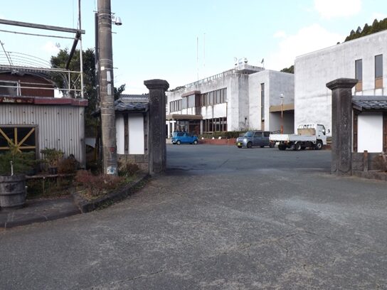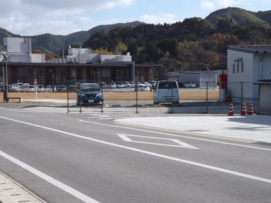 少し先左に郵便局、その東側が新しい南関町役場で立派な庁舎