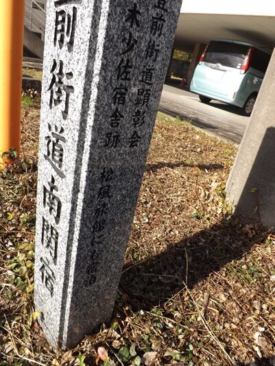 南関宿を抜ける関川に架かる南関橋を渡る橋の袂にあった 豊前街道南ノ関宿構口跡 の新しい碑を見逃した