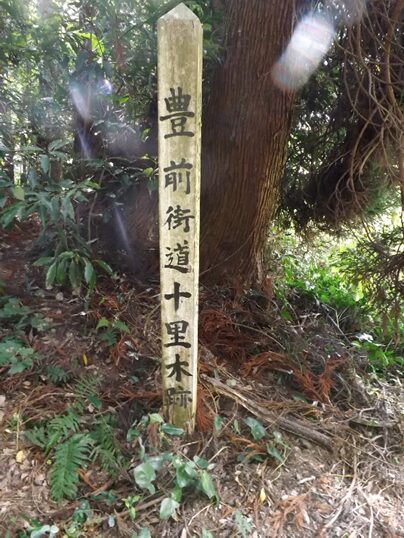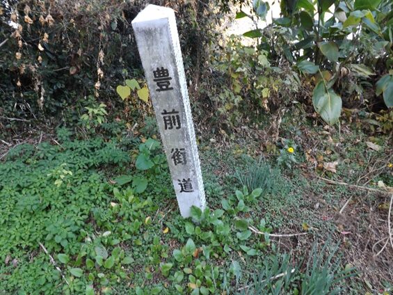 坂の上の道に出た正面に豊前街道の標柱が左を差しているので左へ