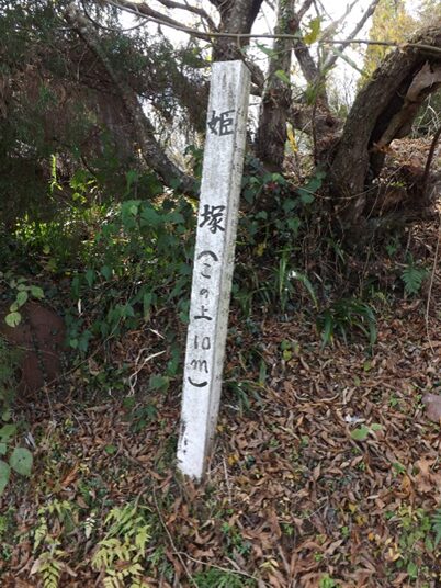 最初は網で入れなくわからなかったが、高台の奥に 石碑 がありました。説明もないし詳しいことが分からないが、武士の娘が小原城落城にともない、ここまで逃れてきたがこの地で自害したという。地元に方の手で祀られてきたのだろう