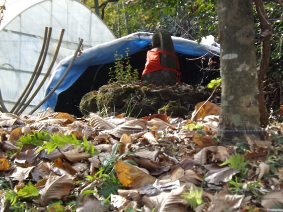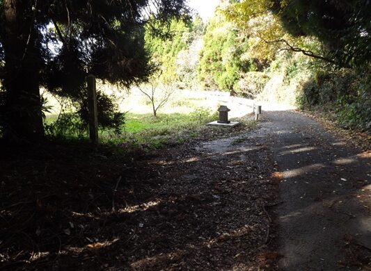 薩軍の墓に入っていったところ、正面の森にあるのだろうが、この先藪で入れなかった。近くに住んでいるなら草刈り機で整備してあげるのにと思った。