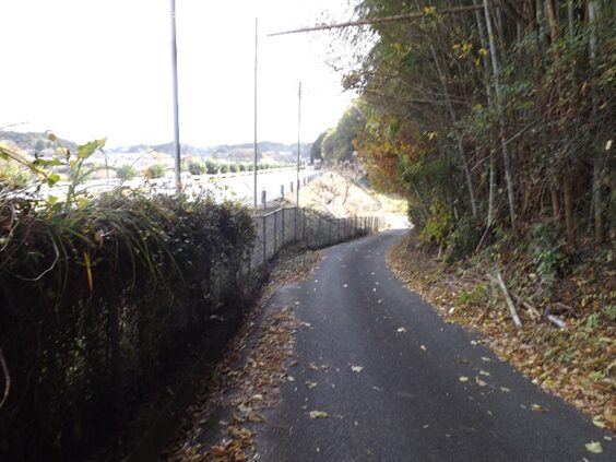 右手の高台は高速道路、沿って緩やかな坂を上る
