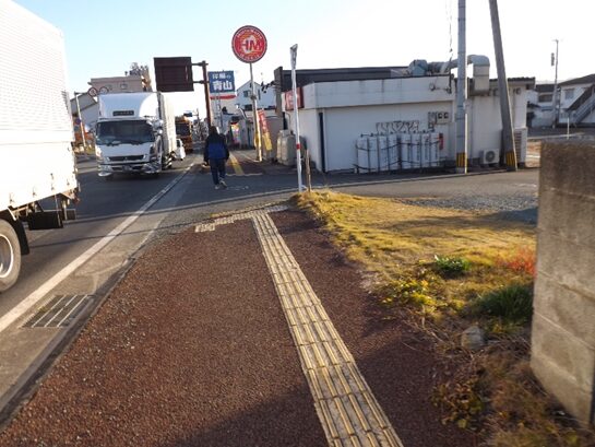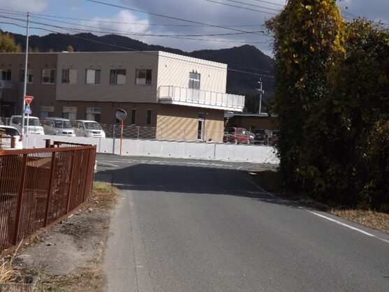 旧道より西側のみちを下り国道443号に突き当たり出てしまって左に折れた、右手に郵便局があります