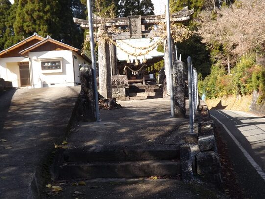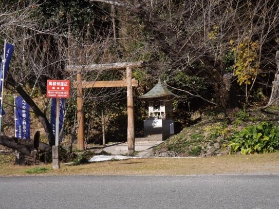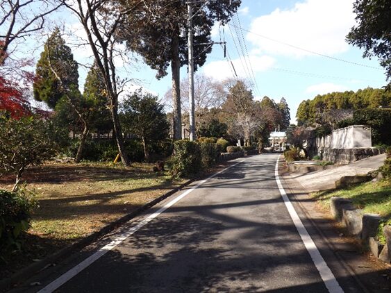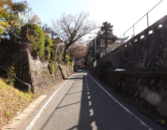暫く広い車道を進むと左に鳥居がある信号交差点で右に折れます