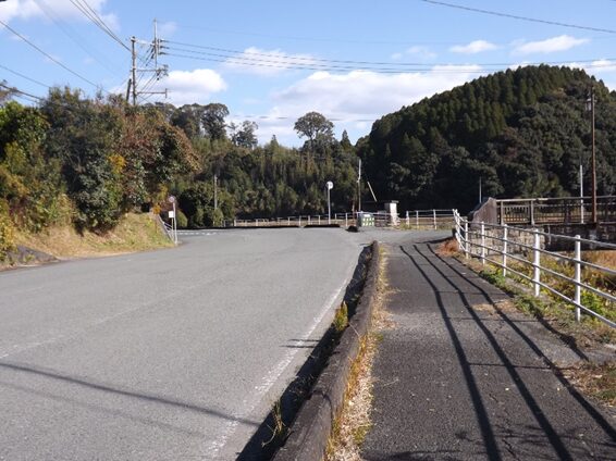九州自動車道の高架を渡ります。国道443号に突き当たるので右に折れる。この辺り少し道が間違いやすい