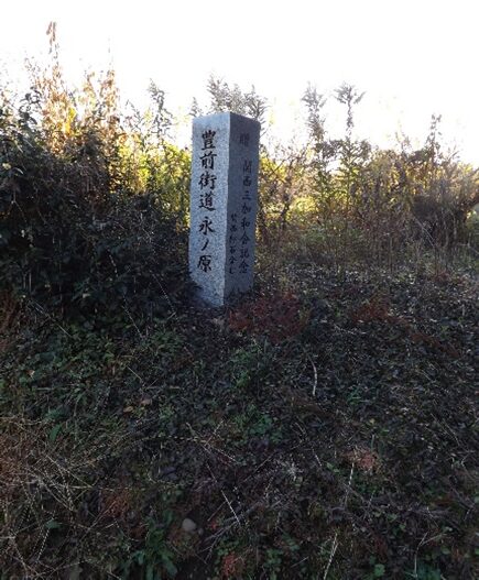 豊前街道永ノ原の石碑 更に100m程先、右からの道と合流する地点に立つ