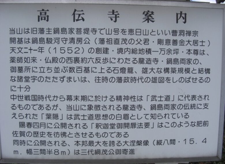 龍造寺隆信が永禄八年(1565)創建龍造寺・その末裔鍋島氏の家老村田氏の菩提寺