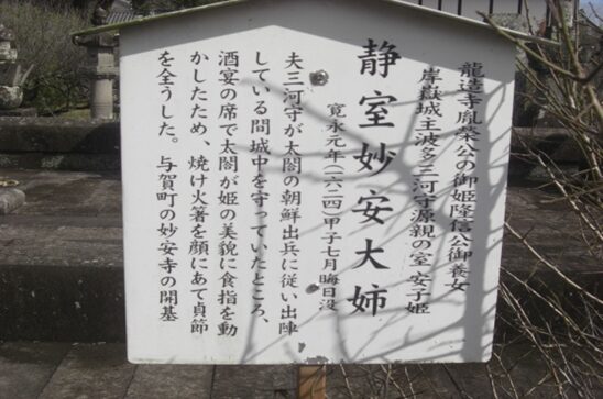 隣、元龍造寺周家の室の墓で、没後清秀に再嫁し両家の親密化を計った女傑
