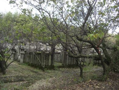 本堂の傍に、佐賀鍋島二代藩主光茂に仕えた、山本常朝は「葉隠」石田一鼎の武士道について師事を受け、藩風を加味して武士道を皷吹した、後、草庵を結び、佐賀武士道を論じた。