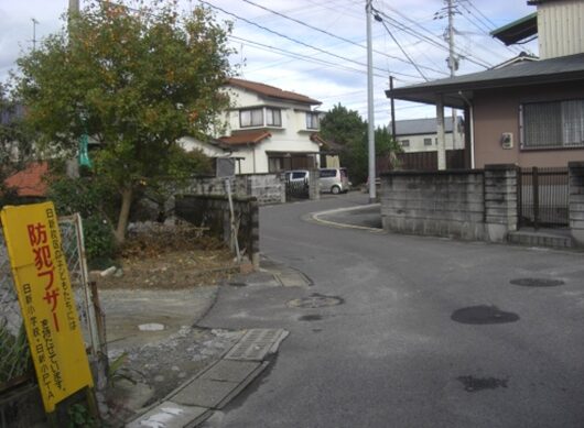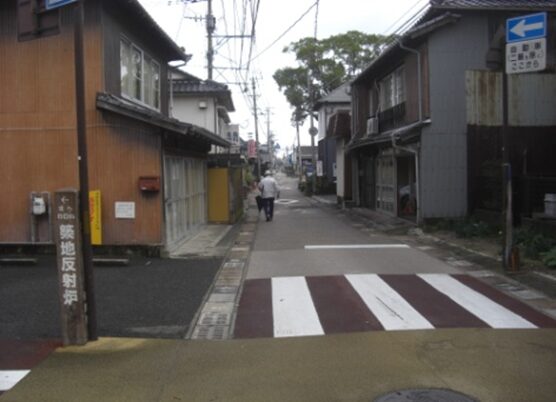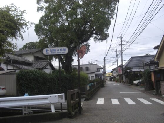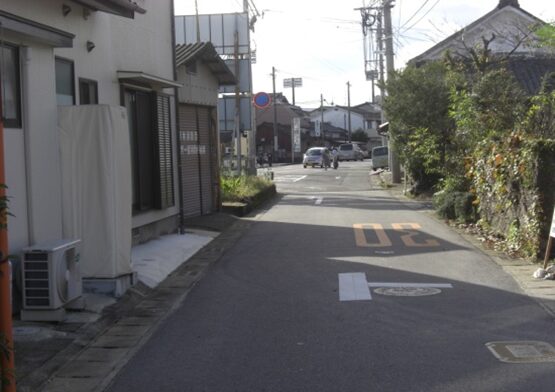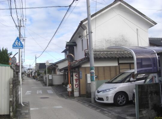 右(北)に折れた先から再度、牛津高校方向を振り返る。途中右に本町公民館があります。そのあたりに