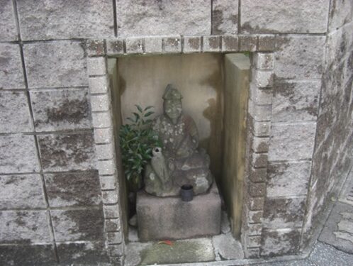 ブロック塀に組み込まれた 恵比寿像