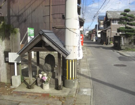 宝暦六年(1756)に長瀬町の鋳物師谷口安左衛門によって鋳造された銅製のものであったが、戦時で拠出され、昭和に入り石像が再建された