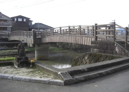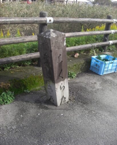 宇野善左衛門は多布施の資産家、自費で明和元年(1764)7月10日橋が完成。これが多布施川に架かる「ぜんじゃあばし」で明治33年一部修復したが、橋の右側に古い橋脚の部分が残っています。