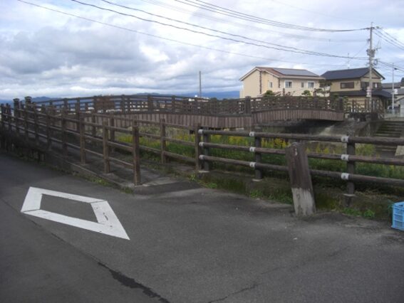 境川(福所江川)に架かる橋を渡り。この川が佐賀市と小城市の境界になります。その先西への街道(国道)に碁盤の目のように小川が交差します
