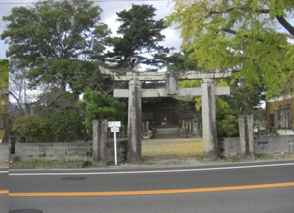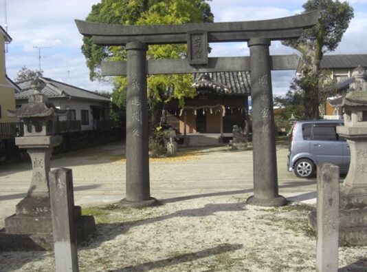 公民館の南側に 香椎神社 鳥居は肥前鳥居