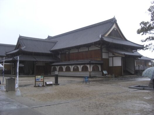平成十六年竣工した 本丸御殿の御玄関と御式台 残念ながら朝早くて御殿内を見学できなかった