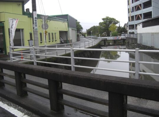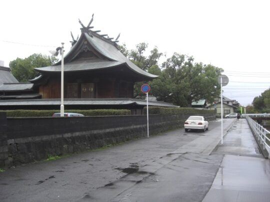 龍造寺八幡宮・楠神社を左に過ぎてすぐの橋を右に見て神社の角を左に折れます