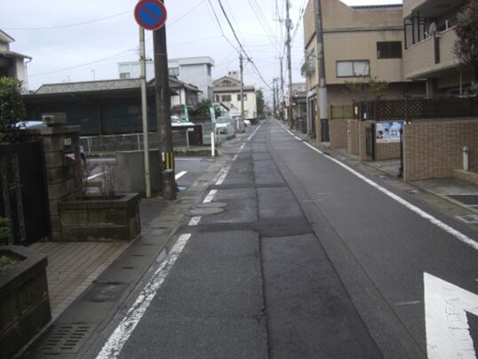 T字路を右に真っ直ぐ、白山一丁目を西へ