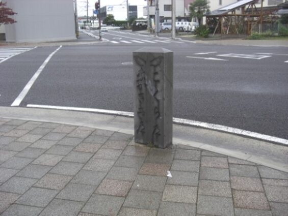 城下町の 道標 「ながさき道 こくらみち いさはやとかいばへ」 江戸時代中期以降の道標と伝わります