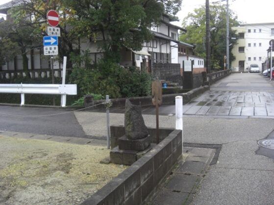 少し先を進むと本庄川に架かる高橋に突き当ります。城下町もここで終わりです。城下町は屈曲の多い街道となっていた。