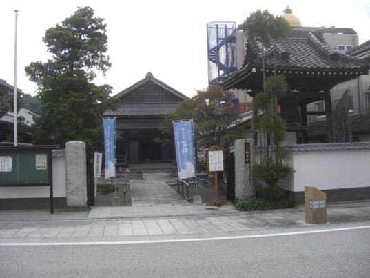お寺に並んだ南隣に 長崎屋 でした伯東寺の前から振り返ったところ