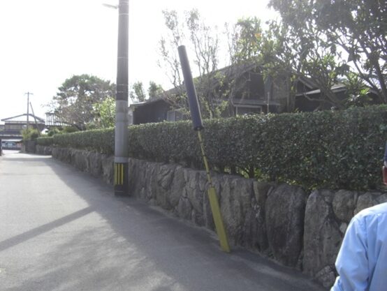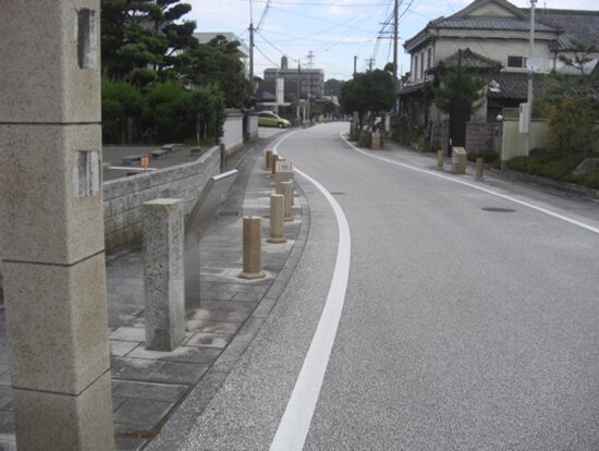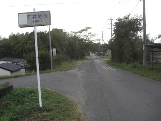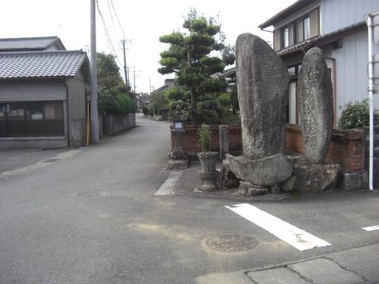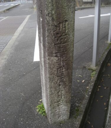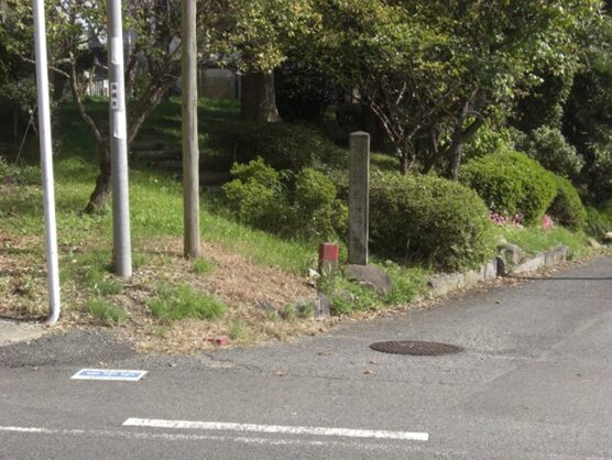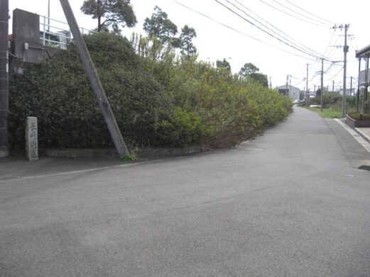 T字路を左に折れるところに、石柱があるがチョット読めません