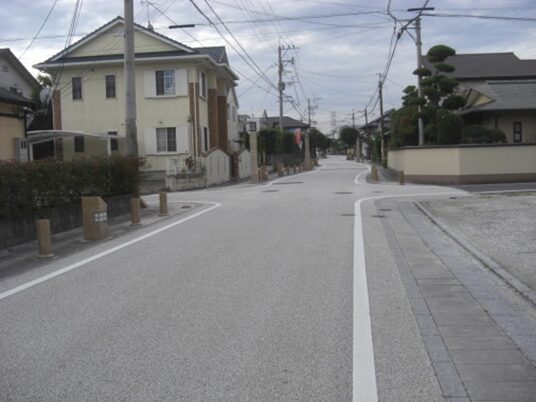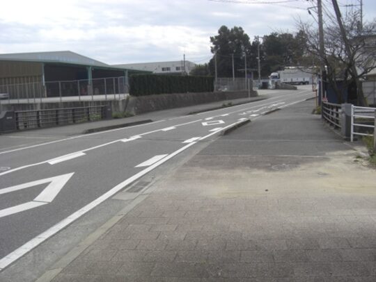 西側で歩道橋を降ります歩道橋を下ると降りたところが旧道ですが、少し真っ直ぐ行く道を進んで、先ほど消失した先の所に行って確認してみます。これは地図上で見たのであっているか分かりませんが