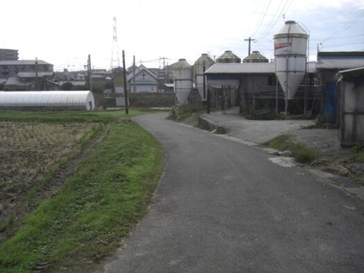 合流した先、左に鳥栖環境開発総合センターがあります。この付近は開発され工場が立ち並んでいます、その間を街道は進む。右に九州サンベンドのある前で道は分岐していますので右を進みました