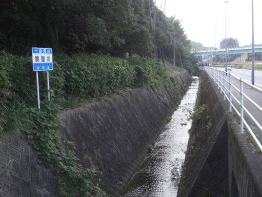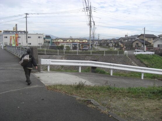 止む得ず右に下りて3号線沿側道を、関屋川に沿った道を進みます。振り返ったところです