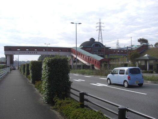 高架を潜った先でJR鹿児島線けやき台駅を過ぎていきます。右手の高台にはけやき台の住宅地が広がります