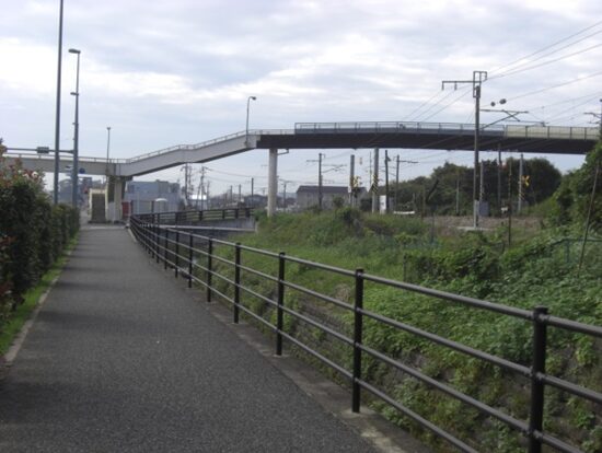 長い歩道橋を渡ります、JR線も跨いでいます