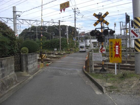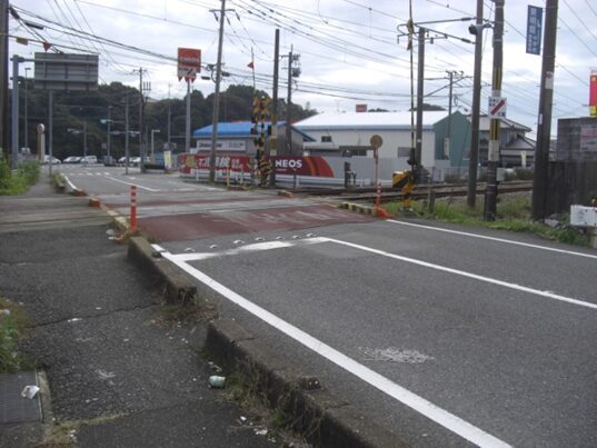 左に折れたすこし先で、JR線の踏切に出ます