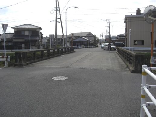 街道はすぐ先で右(西)にカーブして小さな川を渡り、西に村田宿の街並みが続いています