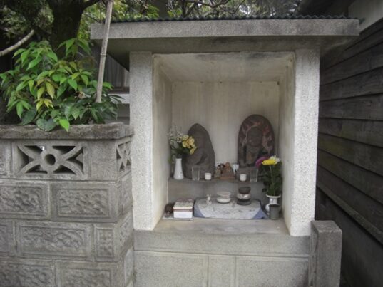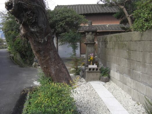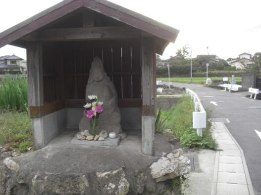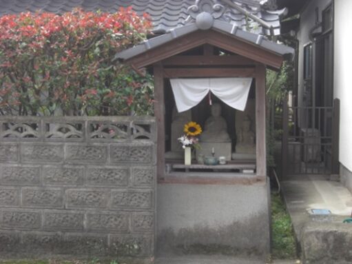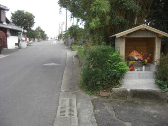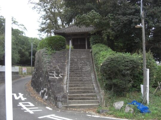 公民館の手前で右手の石段の上に お堂