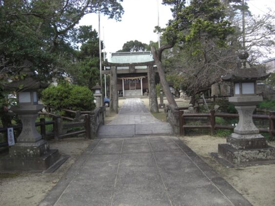 境内には肥前特有の鳥居の形で肥前鳥居と呼ばれる、狛犬の一対