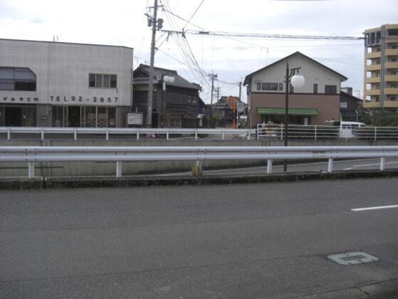 やがて高原川の関屋上橋を渡ります関屋川は左(3号線の西)側に南東に流れます。旧道は3号線の東側に出て、川に沿った道を150m進み左にルミエールのある十字路を右の関屋川に架かる橋を再び渡り3号線の上町信号交差点に出ていましたその旧道が残っているようですが、上町の交差点に来なければ対岸に行けなかった