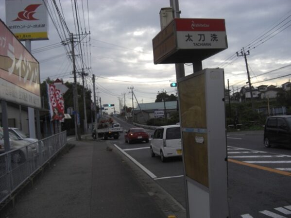 この辺りはかつて 大刀洗峠 であったが今はその面影は全くない。峠は養父郡と三根郡の境界であった。