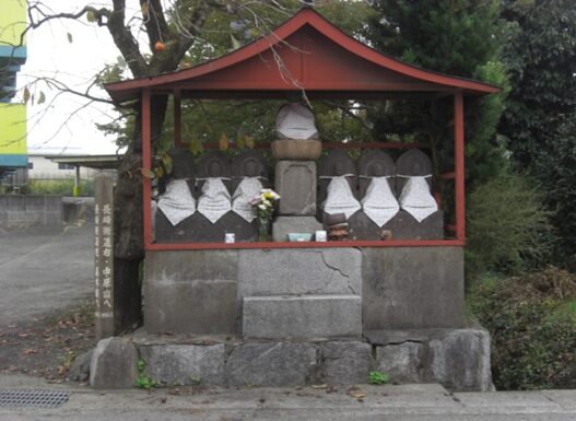 横断したすぐ先左、村田宿の東口に 村田の六地蔵と延命地藏 が並ぶ六地蔵は文化五年(1808)の銘があります