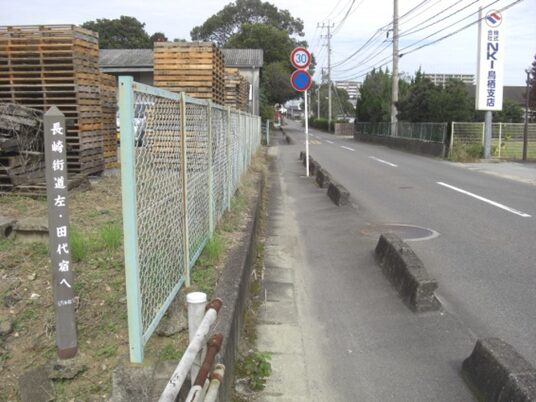 3号バイパス道路より左に入る所三国信号交差点の手前で、3号線に平行した道で、長崎街道の案内石標が建っています