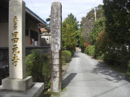 伯東寺の西側前の街道を進みます、お寺の向かいは 郡屋跡